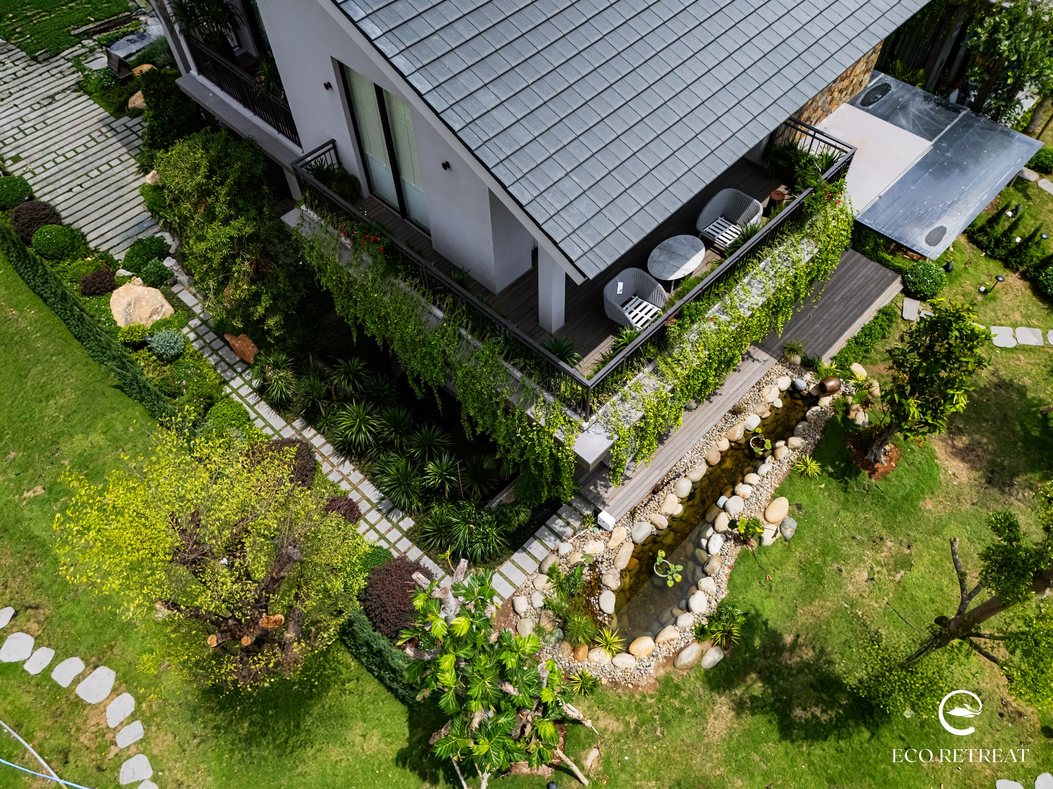 Từng chi tiết trong căn nhà, từ nội thất bên trong đến sân vườn bên ngoài, đều được đầu tư chỉn chu nhằm mang đến cho khách hàng cái nhìn thực tế nhất về không gian sống tương lai của mình tại Eco Retreat Long An.