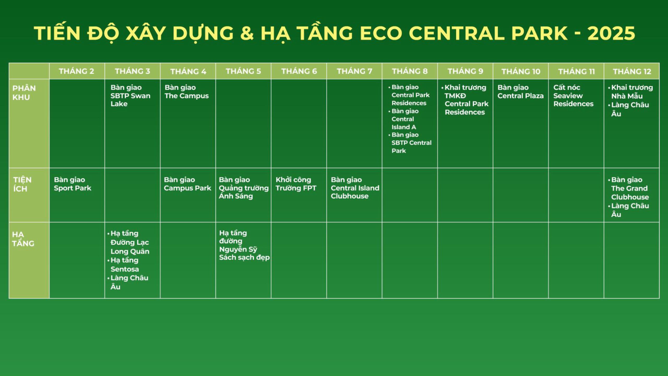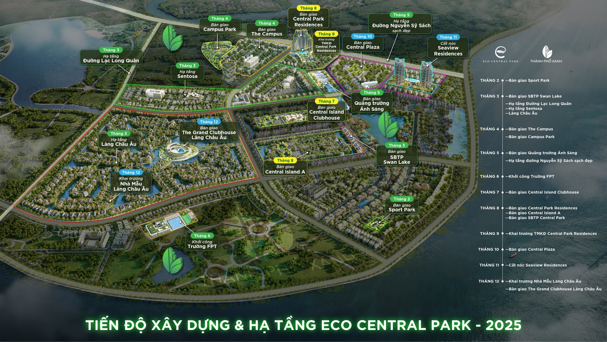 Tiến độ bàn giao và xây dựng hạ tầng tại Eco Central Park năm 2025
