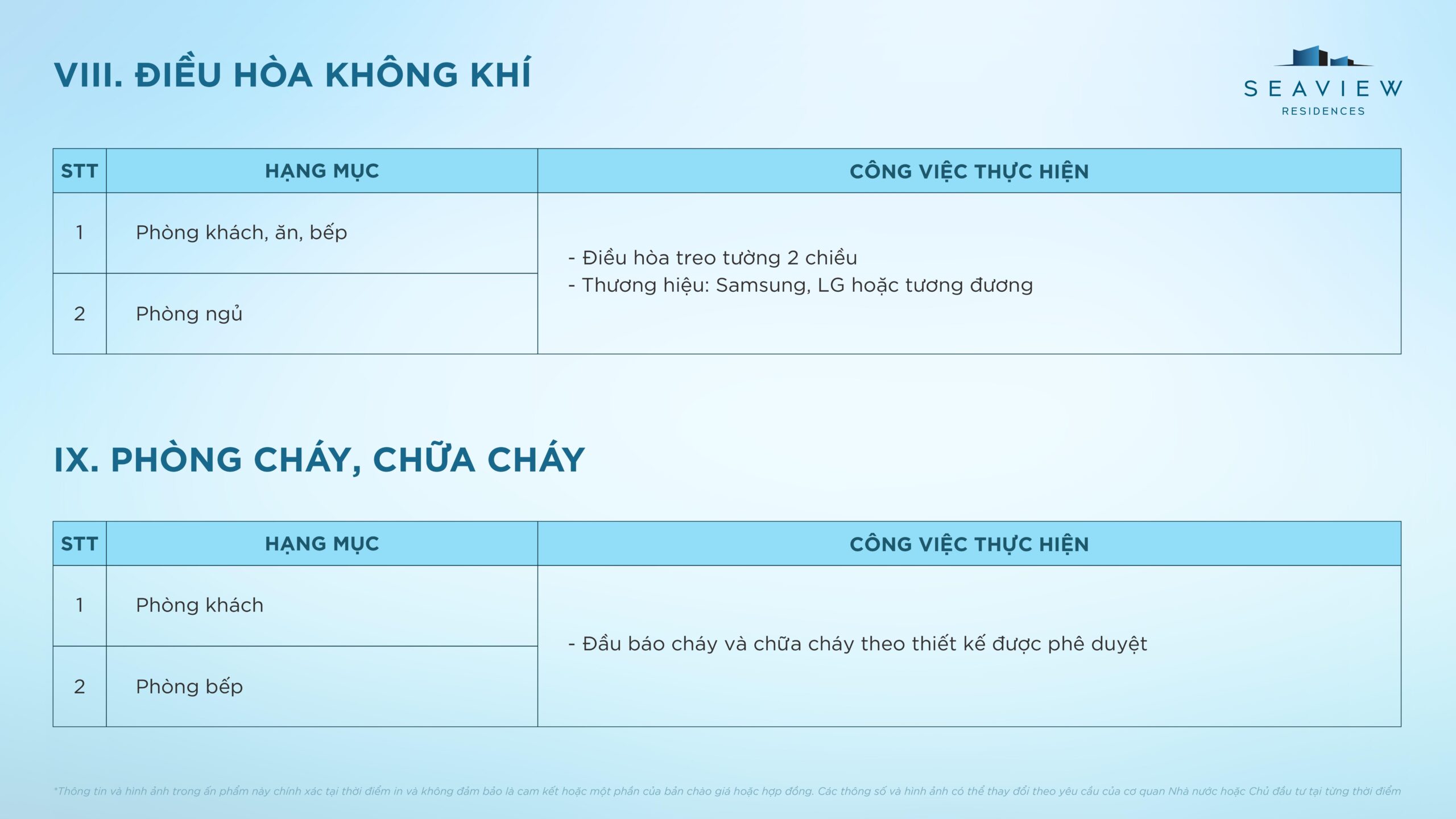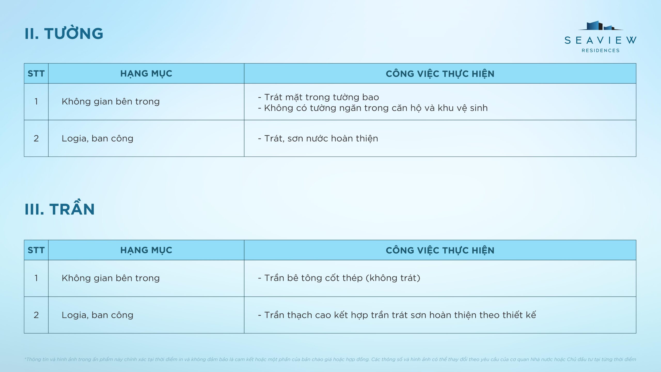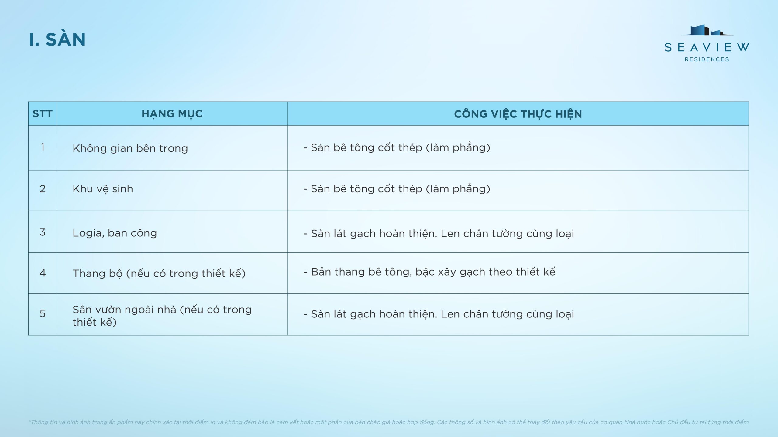 Điều kiện bàn giao căn hộ điển hình Seaview Residences