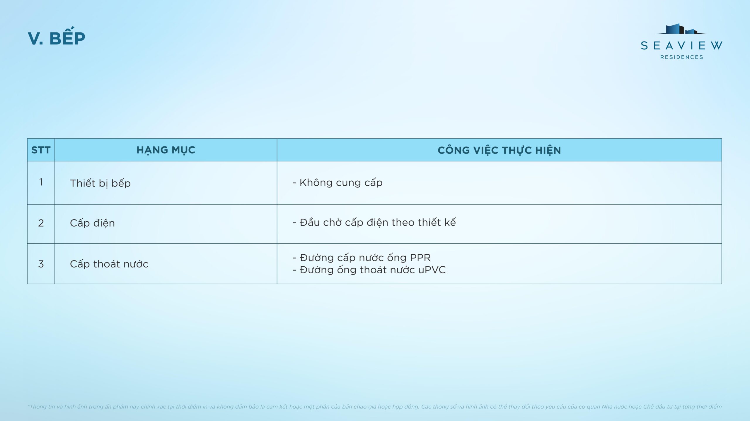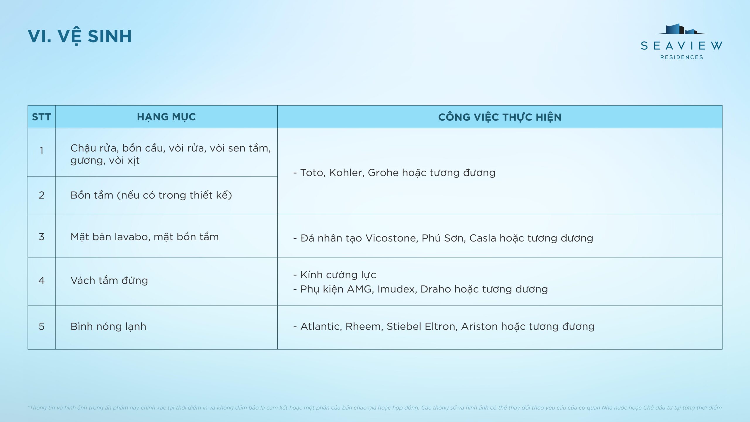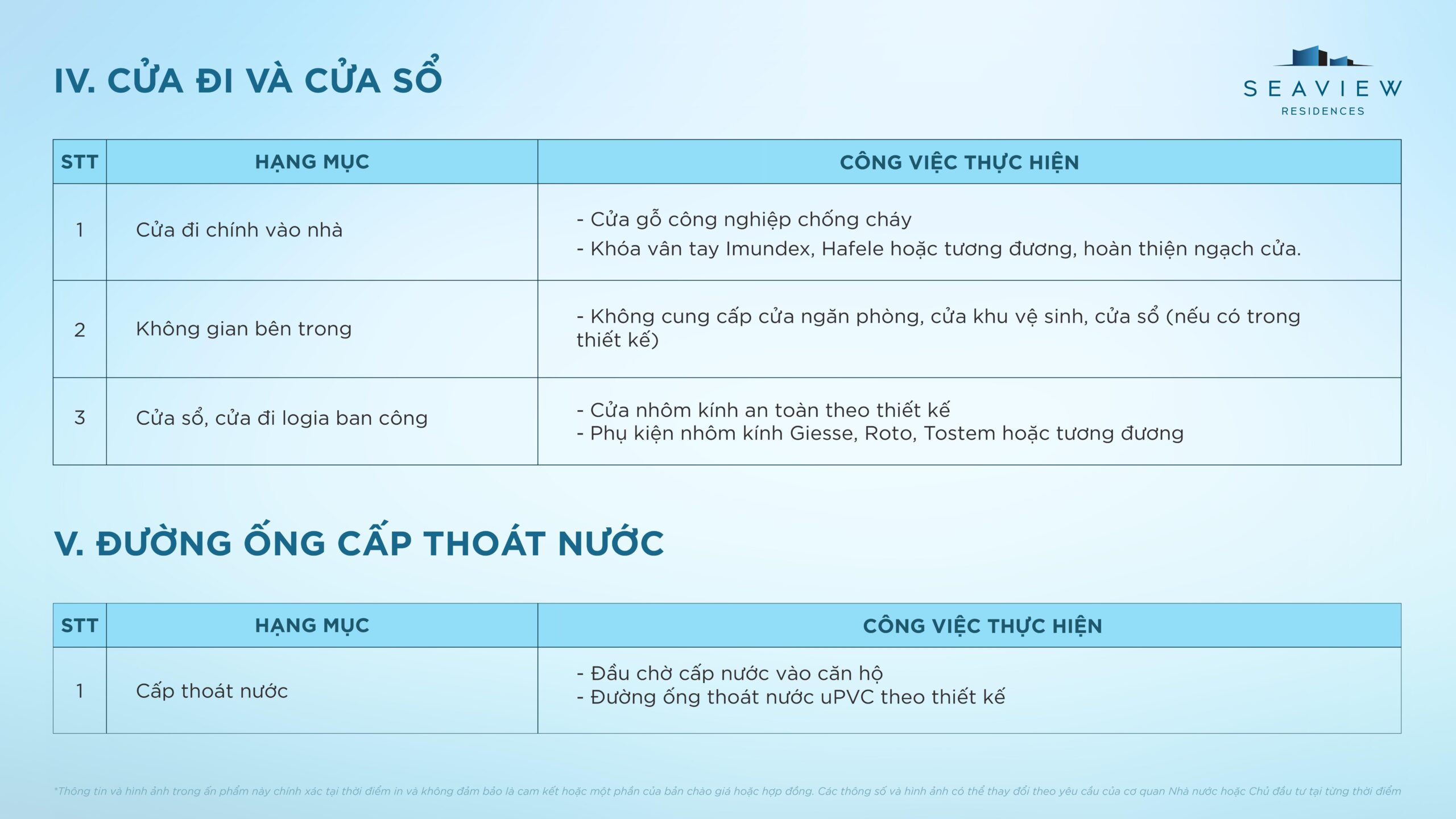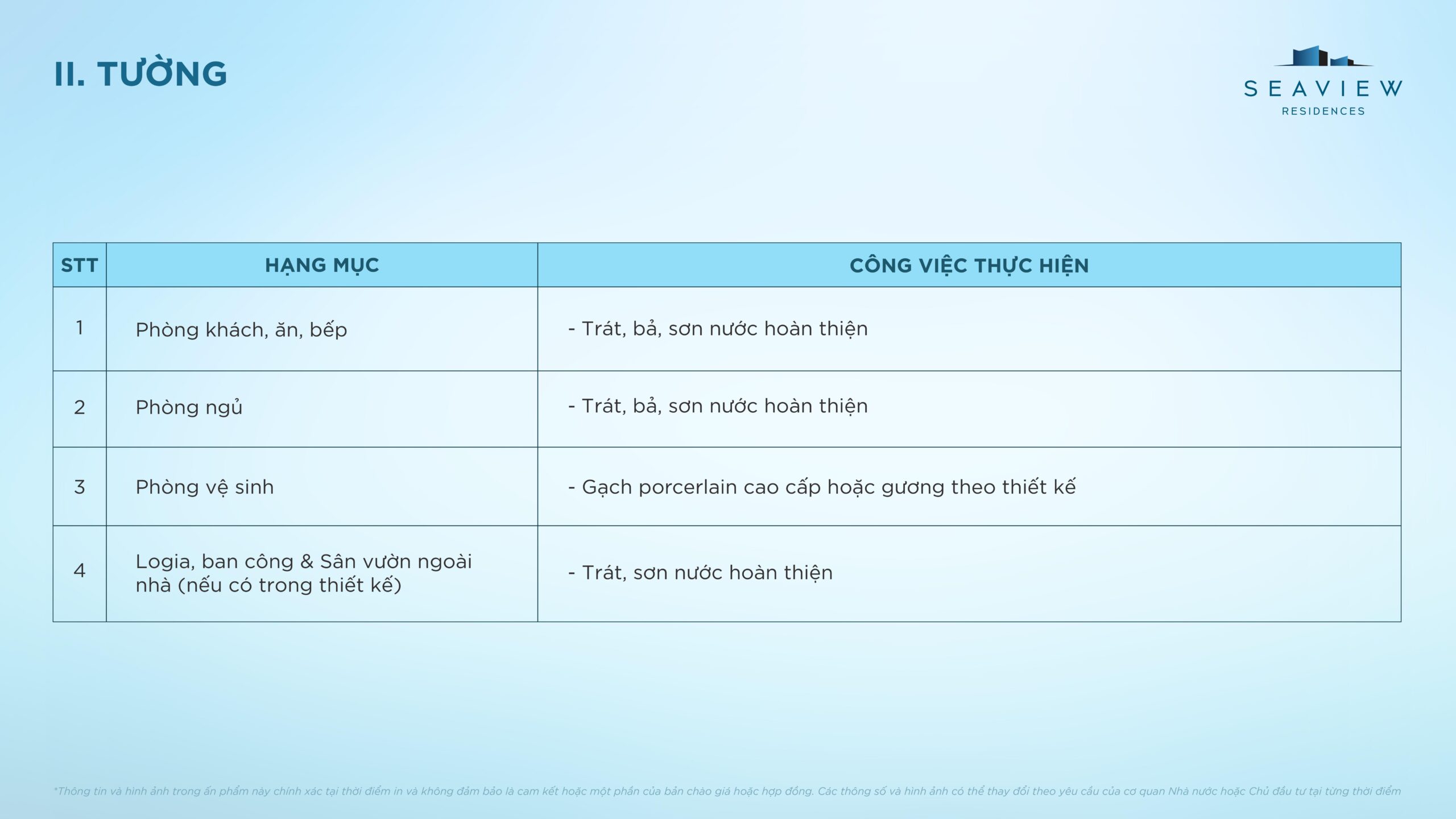 Điều kiện bàn giao căn hộ điển hình Seaview Residences