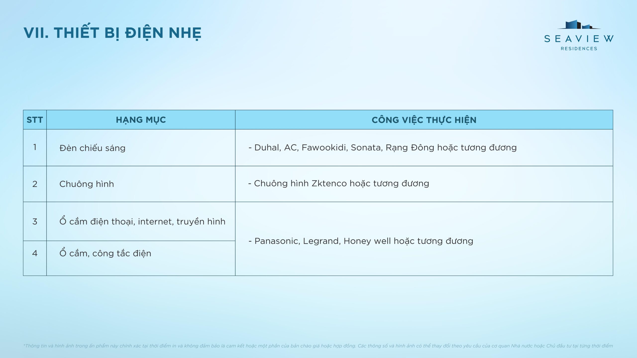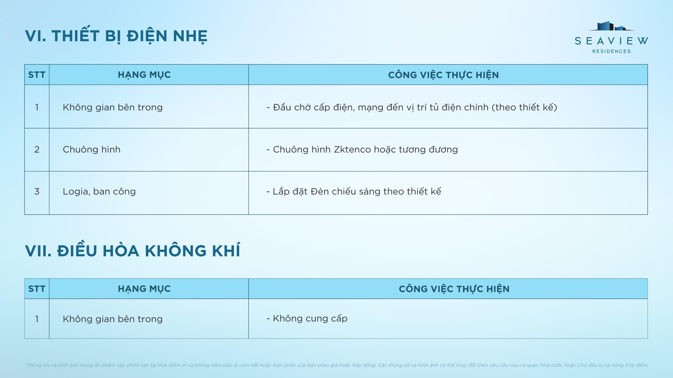 - Đầu chờ cấp điện, mạng đến vị trí tủ điện chính (theo thiết kế)