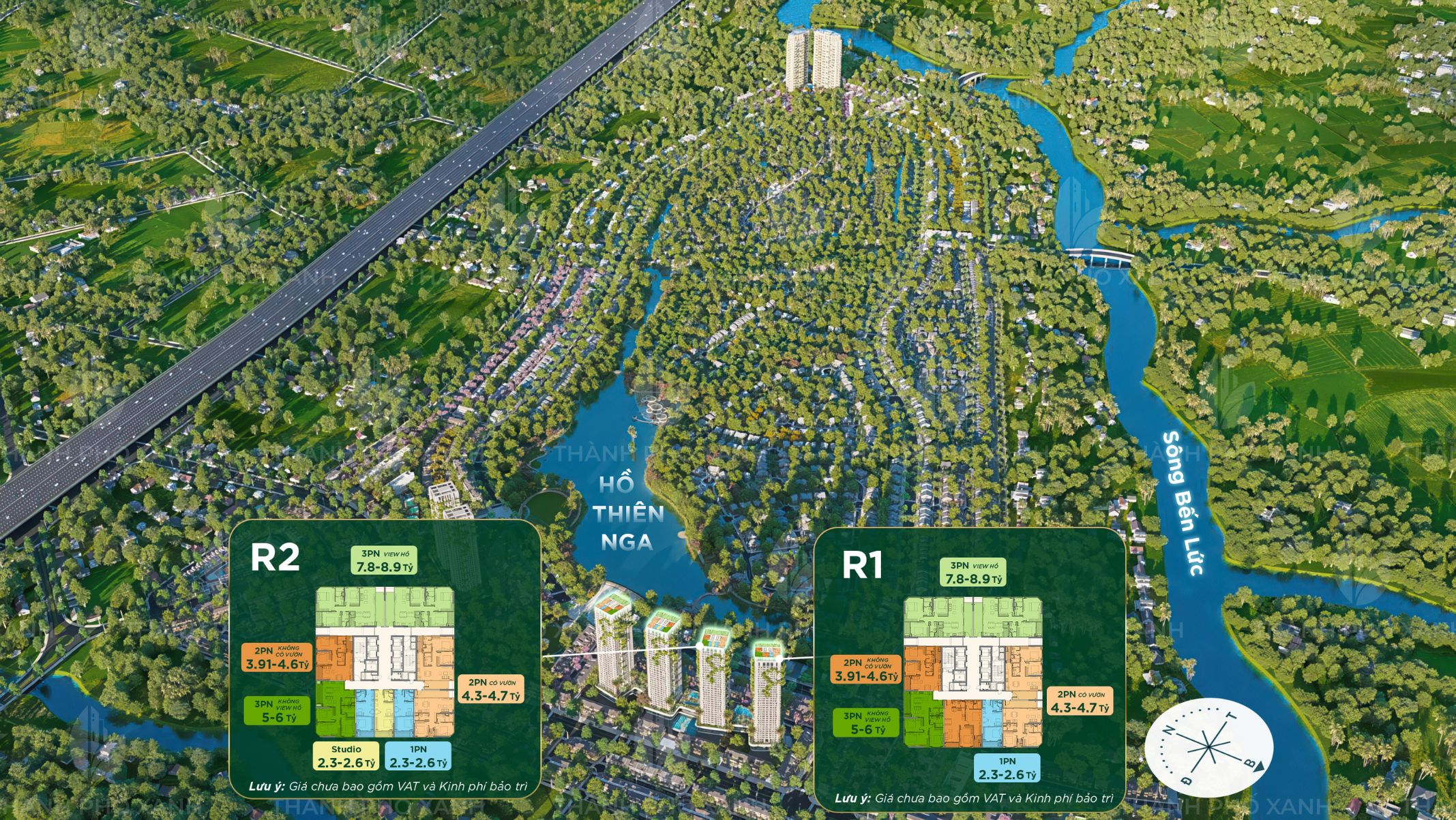 Từ các mặt bằng R1 và R2, có thể thấy Forest Onsen phát triển theo hướng đa dạng hóa sản phẩm, trải dài từ căn hộ diện tích nhỏ đến các căn hộ gia đình và dòng sản phẩm cao cấp hơn. Mức giá được phân tầng khá rõ ràng, bám sát diện tích, công năng và đặc biệt là yếu tố view.