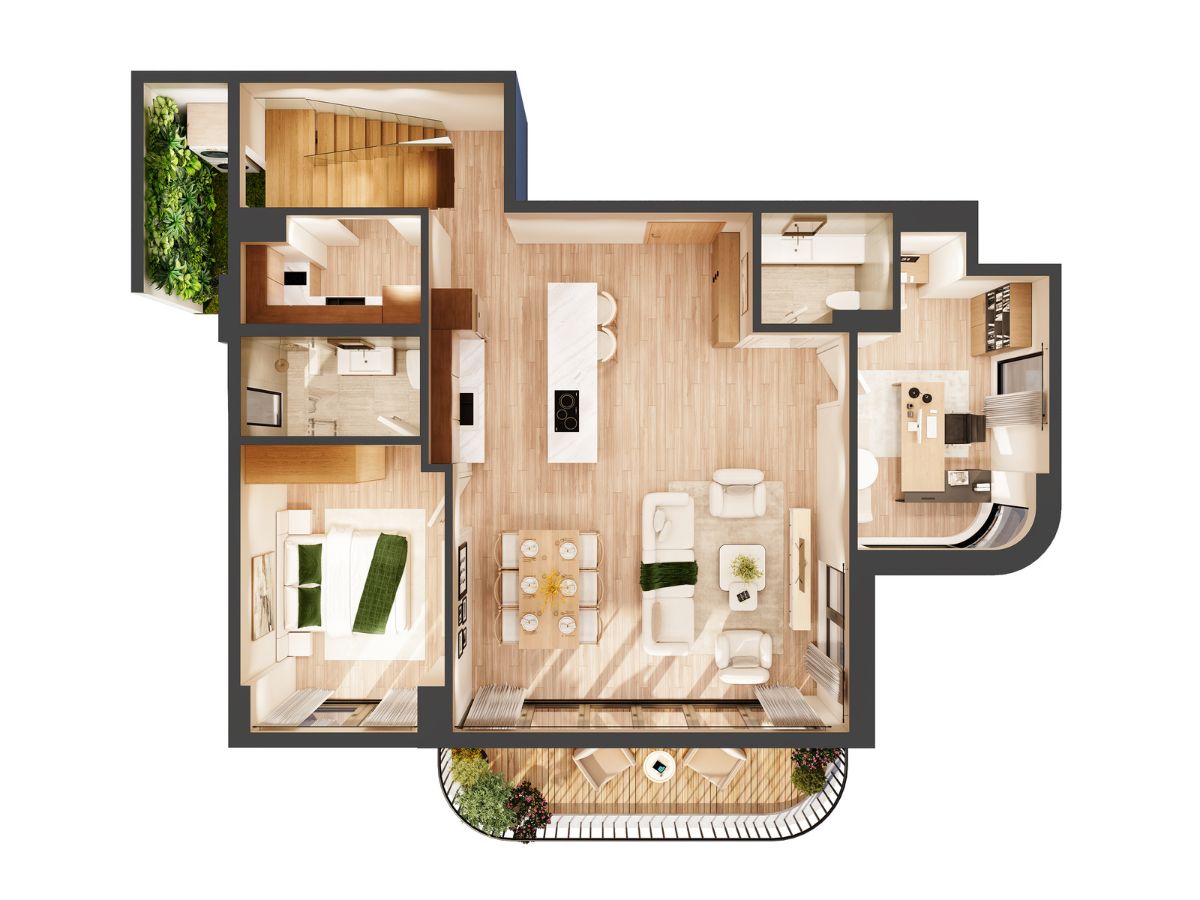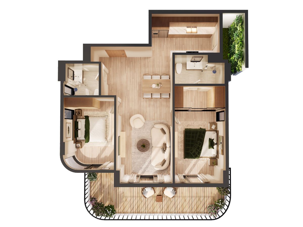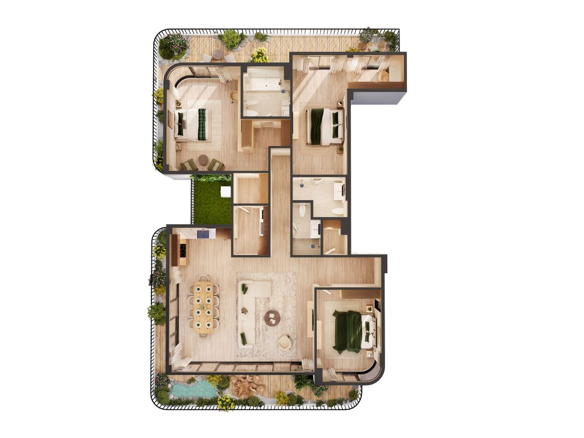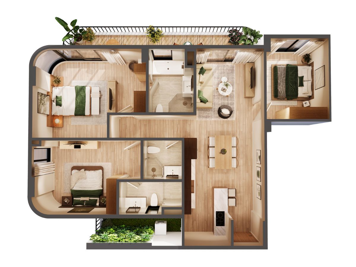 Với diện tích lớn cùng tầm view Panorama 3 mặt thoáng, đây là những căn hộ lý tưởng cho gia đình thượng lưu đa thế hệ