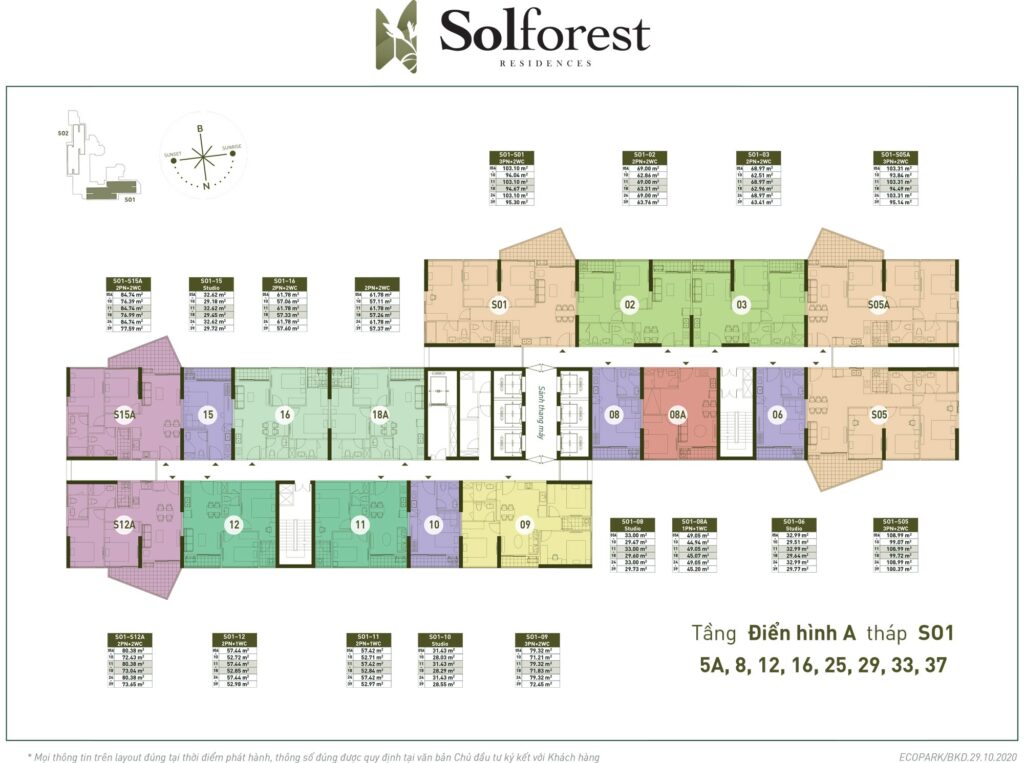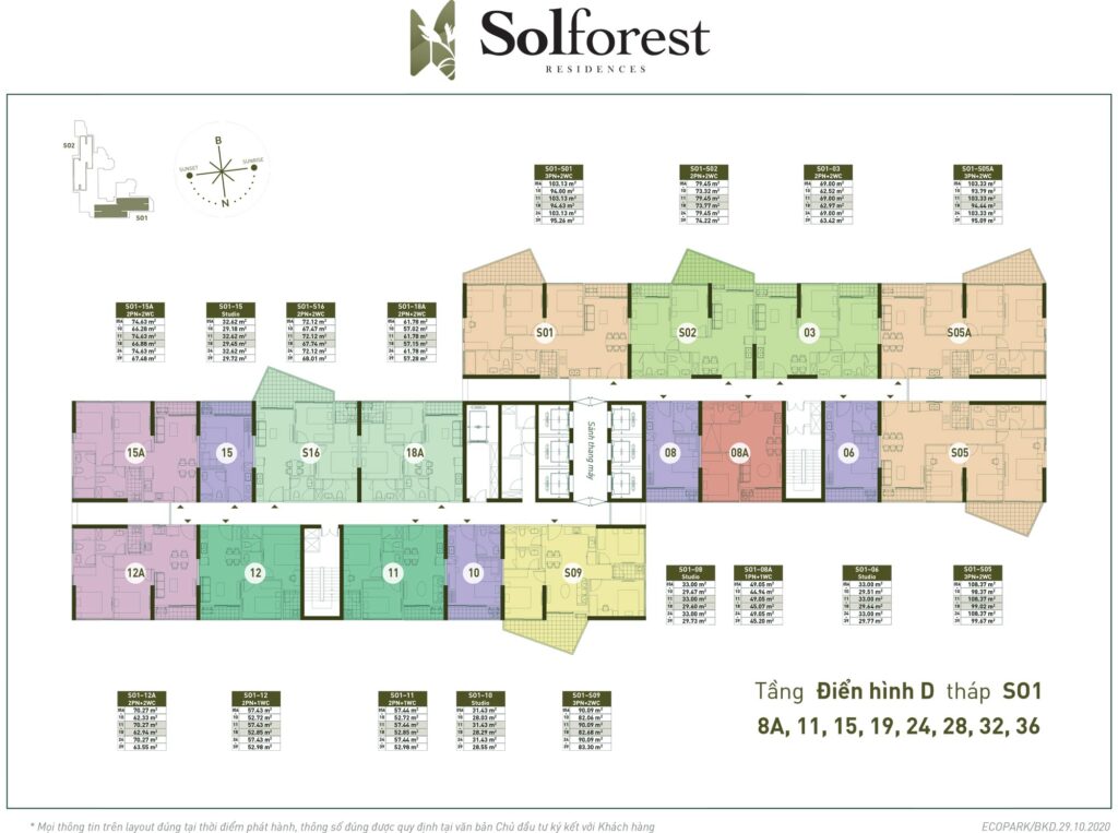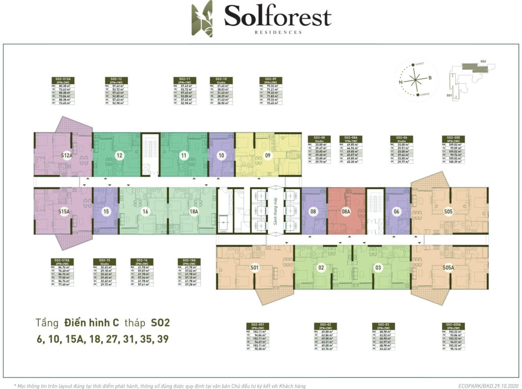 Căn hộ đặc biệt: Garden Villa, Mezza, Duplex, Sky Villa - Mật độ căn hộ: 30% căn hộ có ban công Solforest, 30% căn hộ Studio & 1PN+1, 15% căn hộ đặc biệt
