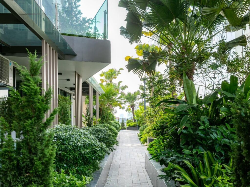 - Hệ thống cây xanh tại các sân vườn được lựa chọn, đảm bảo: phù hợp thời tiết quanh năm, ít rụng lá và không cần nhiều thời gian chăm sóc/ bảo trì.