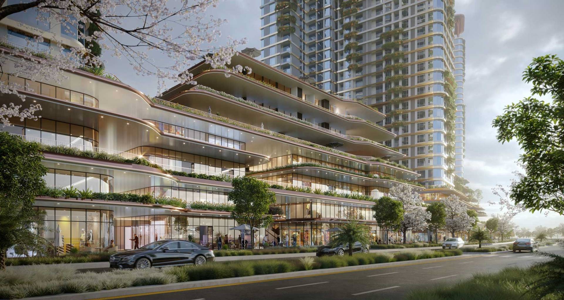 - Kiến trúc giật tầng cùng hàng trăm khu vườn thẳng đứng trên cao hòa quyện với thiên nhiên.