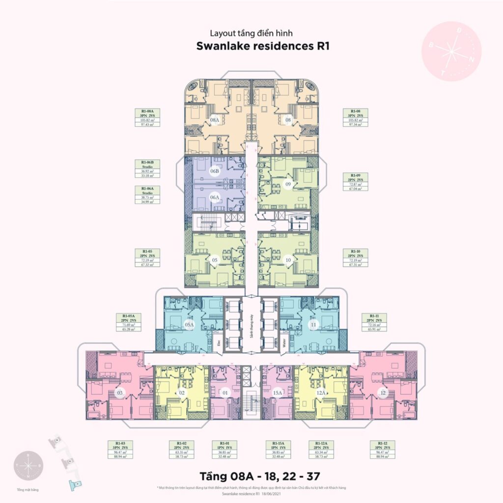 Tòa R1: 39 tầng | 514 căn hộ