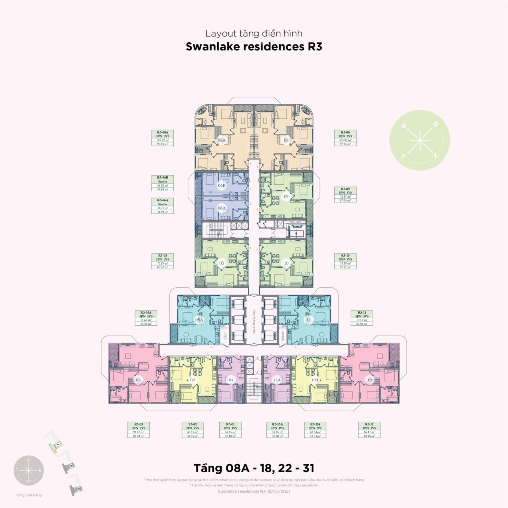 Tòa R3: 33 tầng | 424 căn hộ - Loại hình căn hộ: