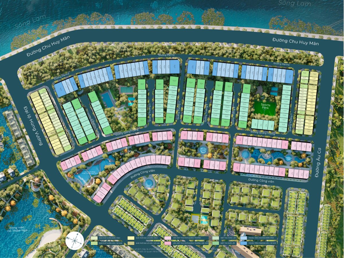 - Vị trí:Phía Đông của dự án Eco Central Park, giáp với đường Chu Huy Mân và được bao quanh bởi 3 trục đường chính: đại lộ Hùng Vương, đường Âu Cơ và đường Công Viên.