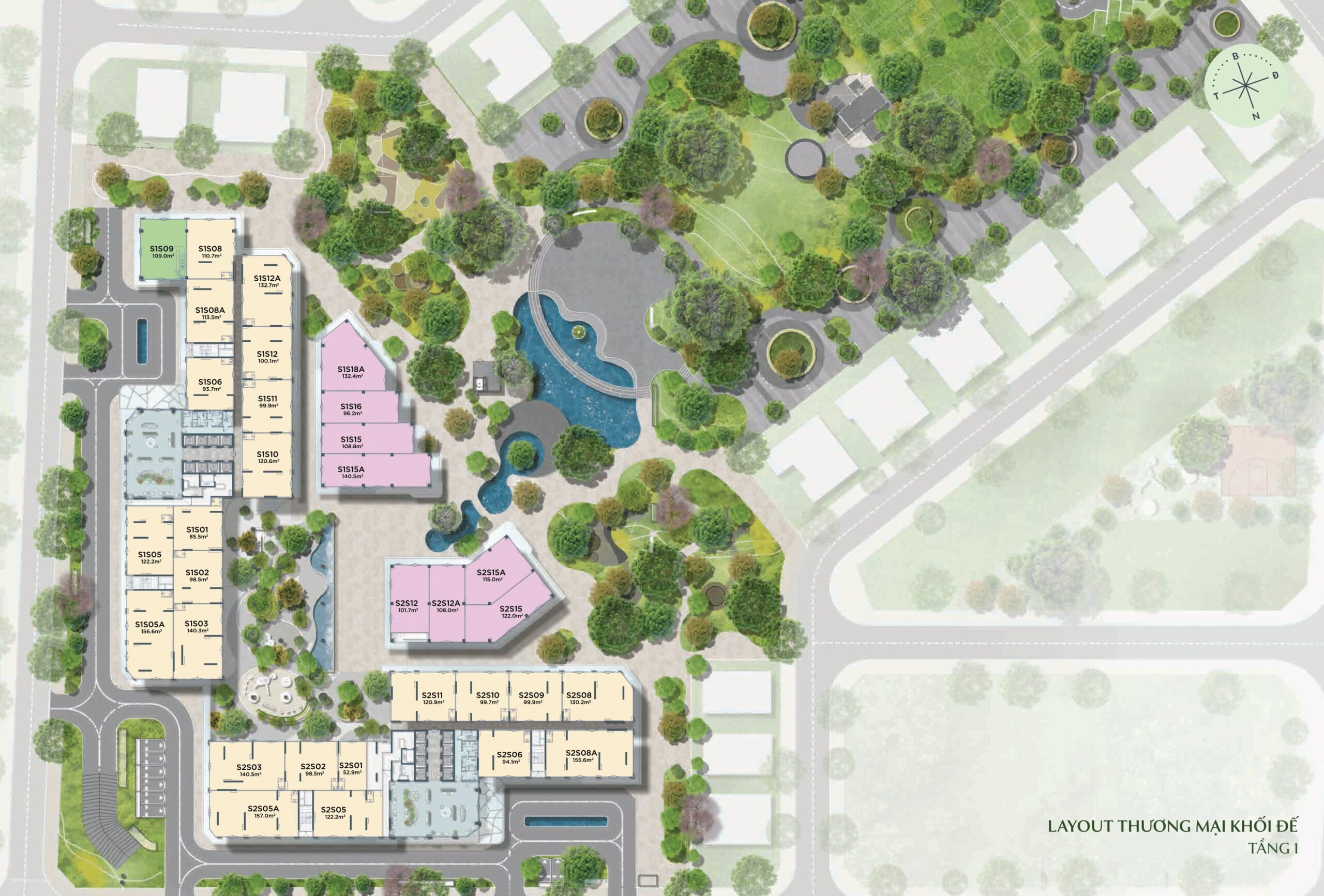 • Shop thương mại: 32 căn | chiều cao tầng 1 cao 7m