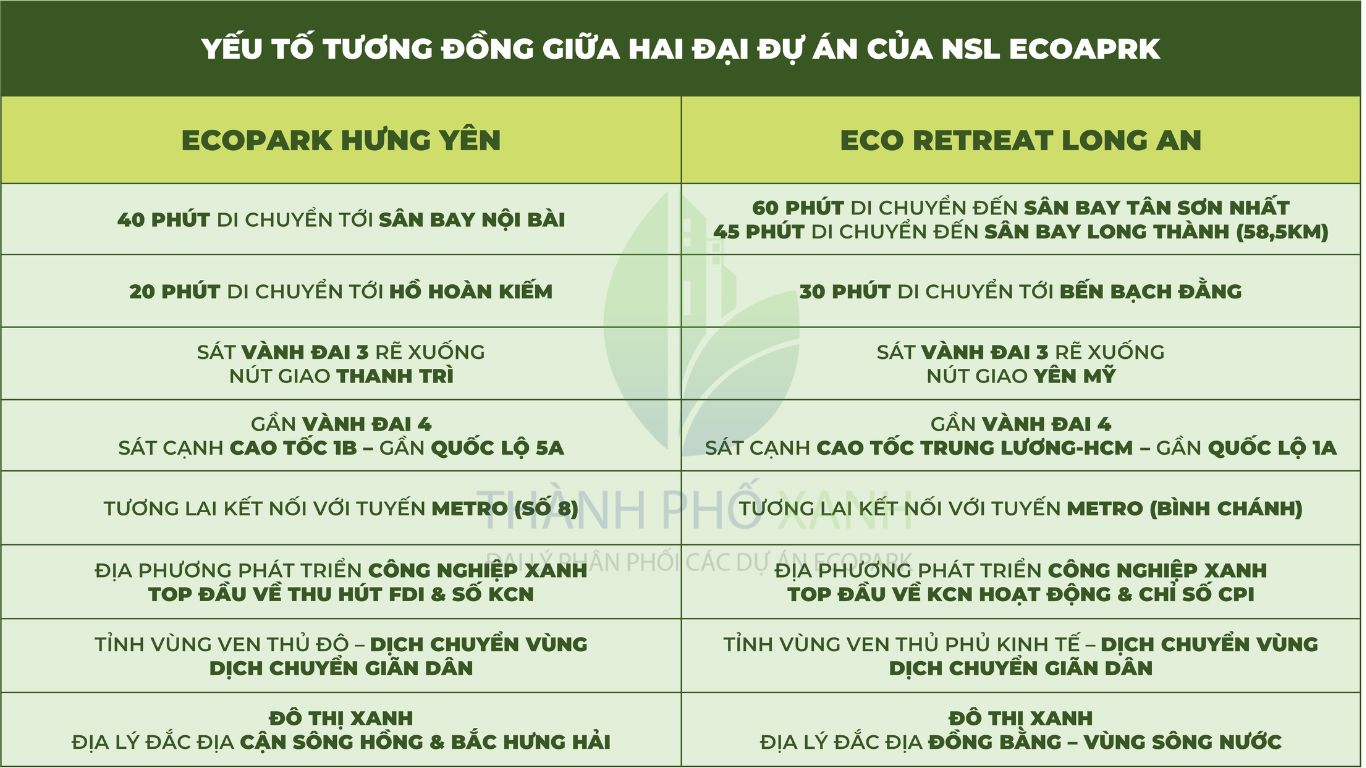 Nếu như Ecopark Hưng Yên là sản phẩm đầu tay, thì Eco Retreat tại Long An là dự án thứ 5 của nhà sáng lập Ecopark. Bên cạnh những giá trị khác biệt thì 2 dự án này lại có những điểm tương đồng đáng kinh ngạc.