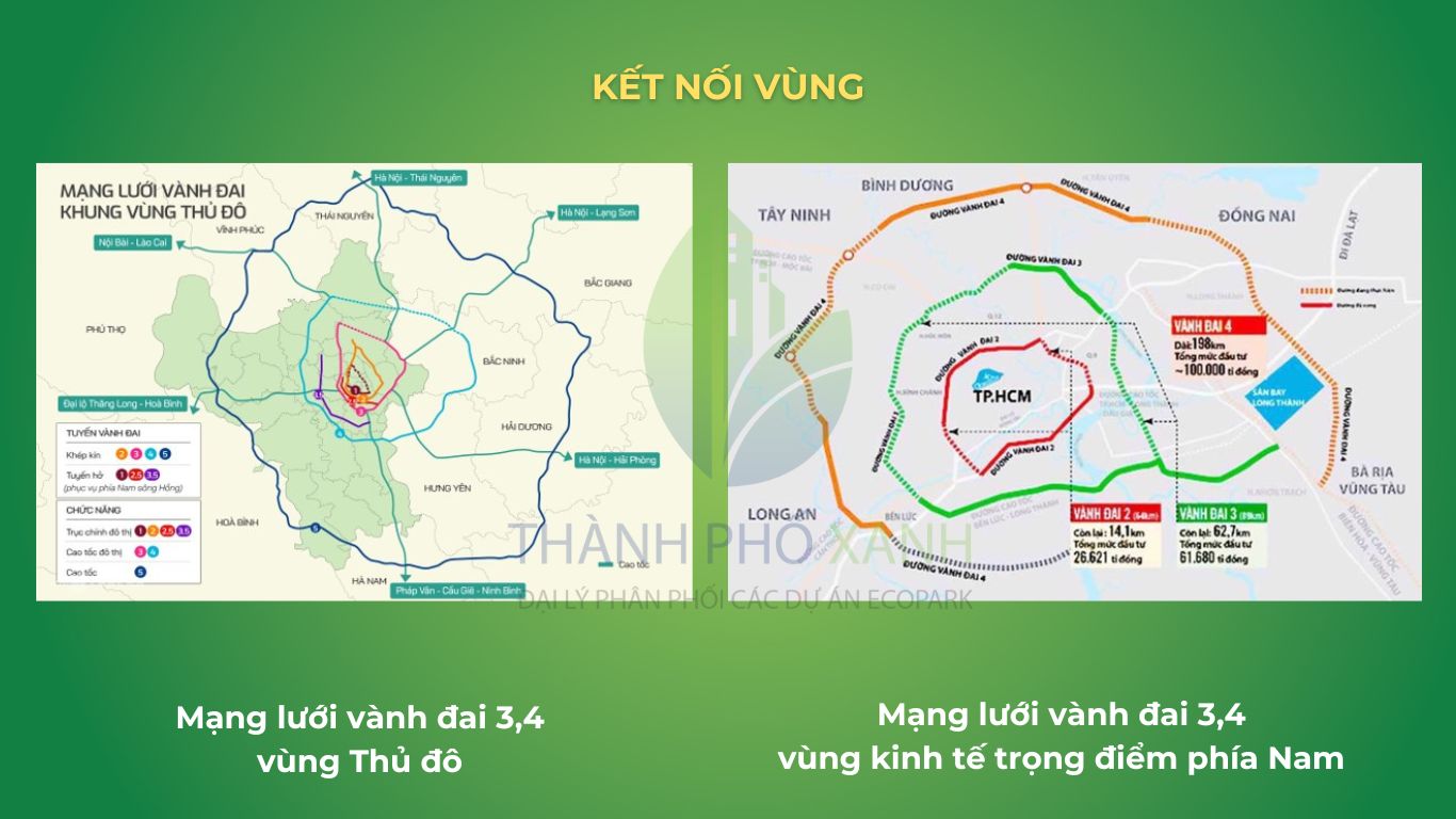 - Mạng lưới vành đai 3 và 4: cả dự án đều nằm trên địa phận có vành đai 3 và 4 của thành phố đi qua, kết nối thuận tiện