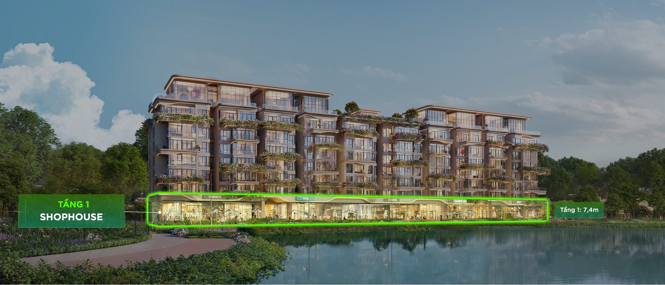 Bên cạnh đó, khu thương mại dịch vụ được bố trí dọc khối đế với 13 căn shop. Chiều cao tầng của các căn shop lên đến 7,4 m, tạo điều kiện thuận lợi cho việc sử dụng đa năng, vừa kinh doanh vừa gia tăng trải nghiệm mua sắm, giải trí và ẩm thực cho cư dân. Các shop này không chỉ phục vụ cư dân Swanlake Residences mà còn thu hút khách ngoài dự án, góp phần tạo sự sôi động cho khối đế.