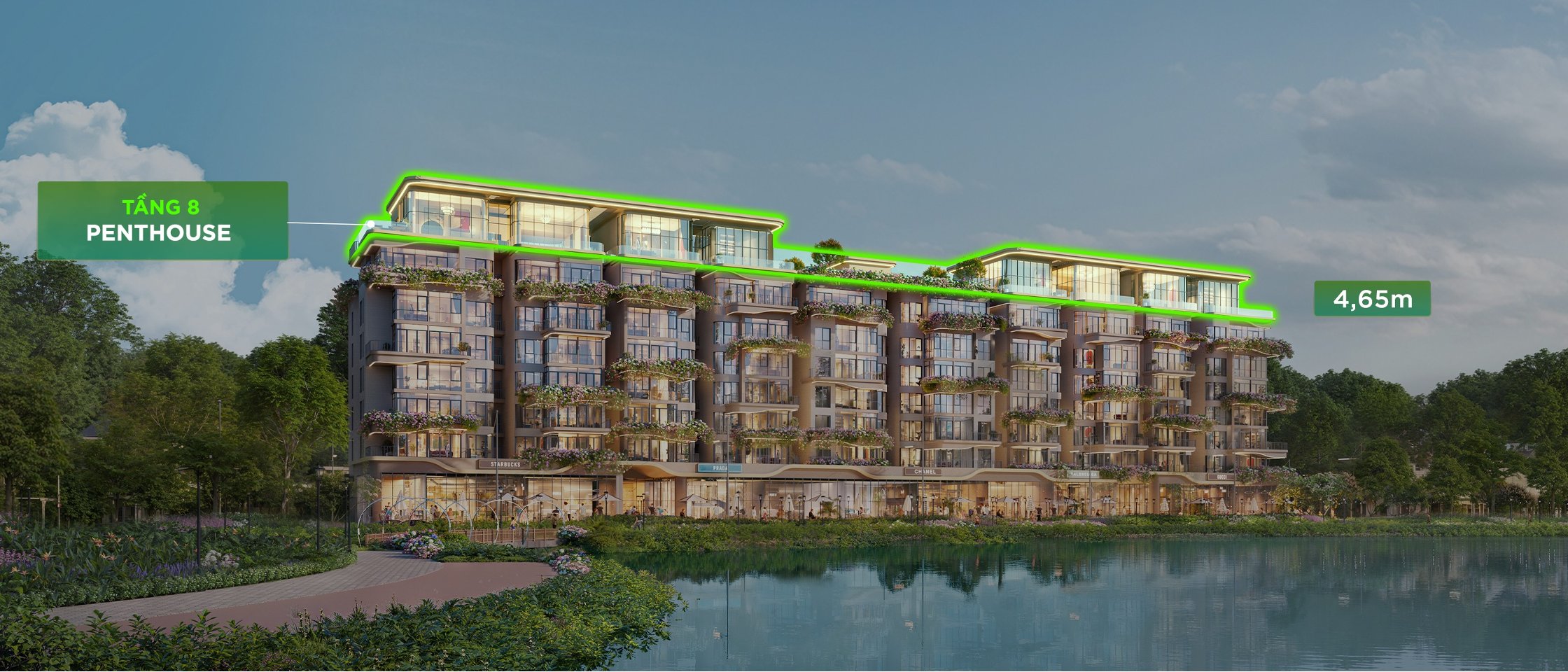 Tầng 8 bao gồm 4 căn Penthouse và 1 vườn thượng uyển nằm trên tầng 8 của tòa L3. Vườn thượng uyển được bố trí trên cao, mang đến không gian xanh riêng tư cho cư dân và tạo điểm nhấn kiến trúc trên tổng thể dự án.