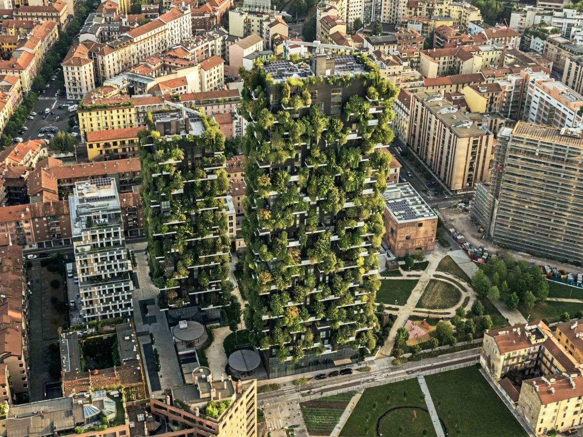 - Bosco Verticale (Milan, Ý): Hai tòa tháp được bao phủ bởi hơn 900 cây xanh, mỗi căn hộ đều có sân vườn riêng. Dự án được coi là biểu tượng của kiến trúc rừng đứng (Vertical Forest).