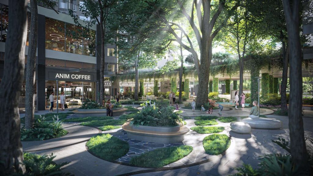 Khác với những con phố mua sắm chen chúc bê tông trong thành phố, hay những trung tâm thương mại đầy kính, tuyến phố shopping, ẩm thực, giải trí tại Haven Park được thiết kế theo mô hình “Shopping giữa rừng”.